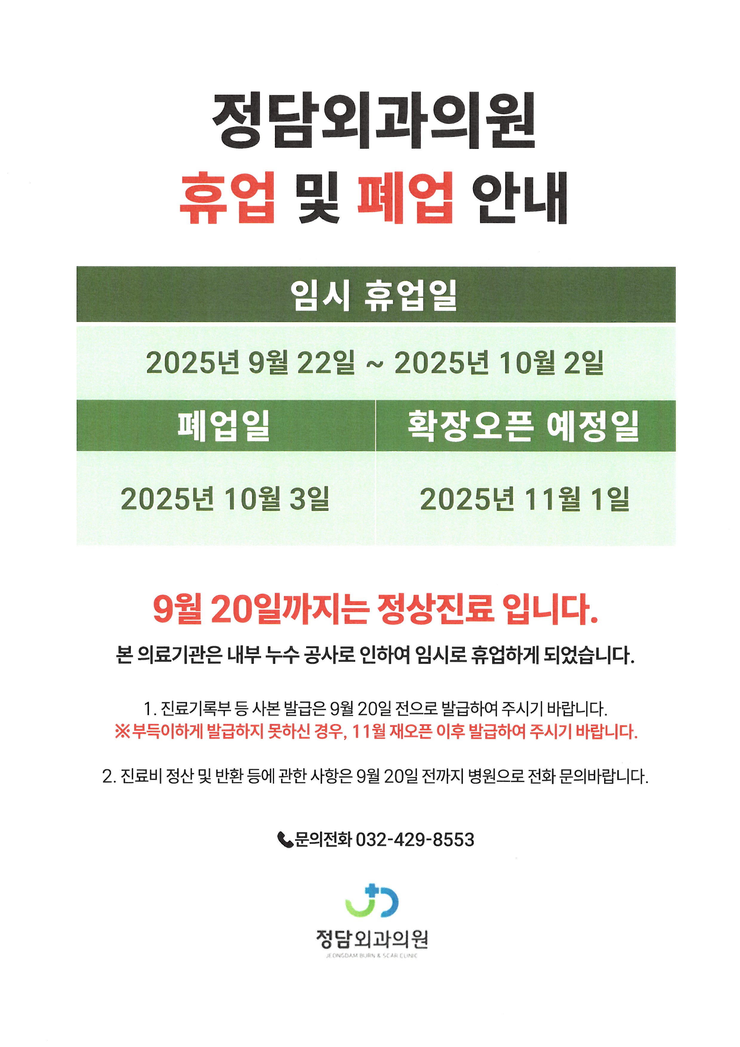 의술을 갖춘 정담외과의원만의 화상클리닉입니다.